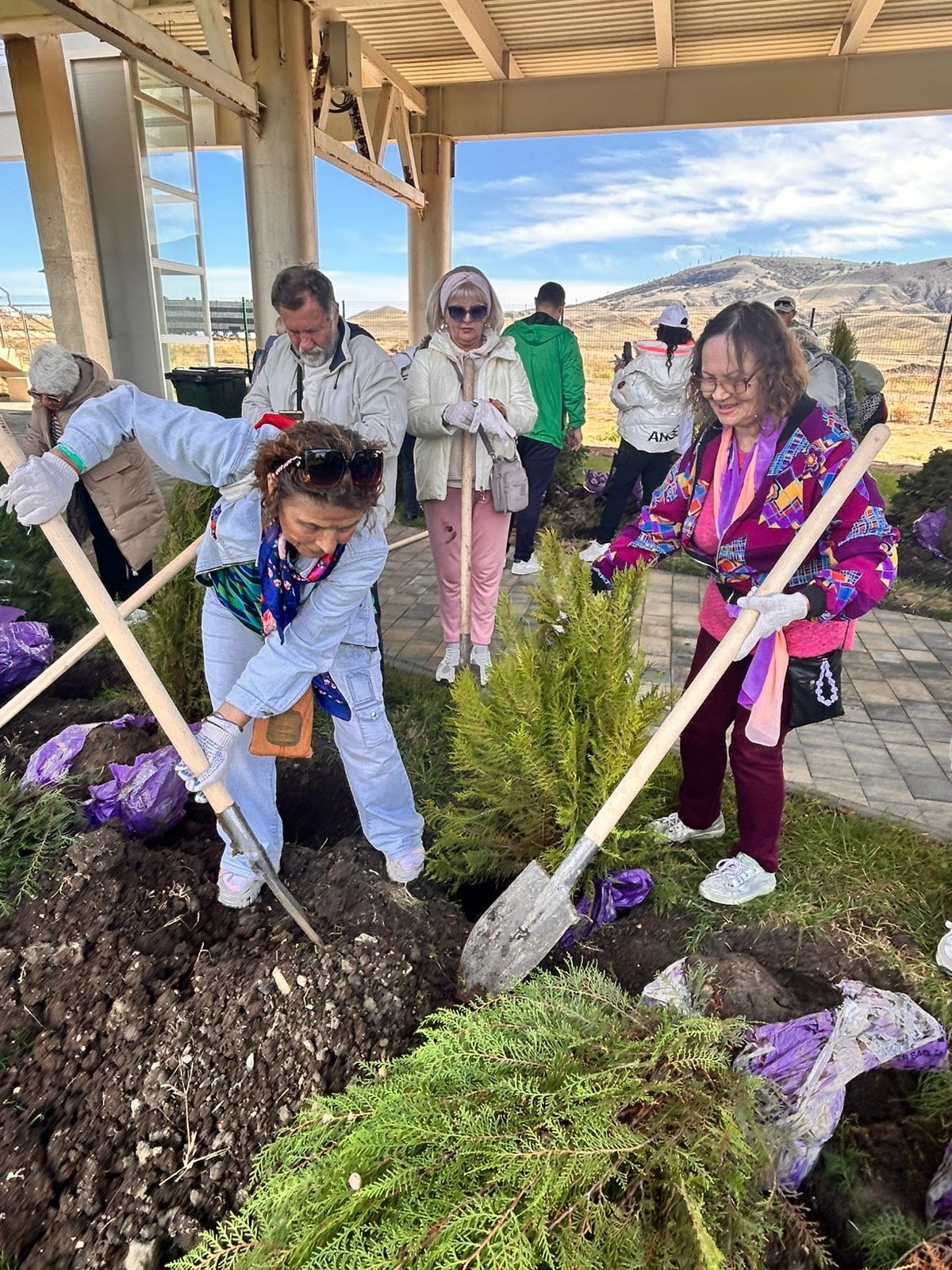 25 октября, выдался на удивление солнечный и тёплый день. Казалось, сама природа подарила нам дополнительный повод для радости и добрых дел. Именно в эту прекрасную погоду команда АНО ЦСКР «Долголетие» в составе 54 человек — наши активные «долголетовцы», волонтёры и члены семей участников СВО — отправилась на Зелёный Фестиваль на площадку Арт-кластера «Таврида» в районе мыса Меганом.